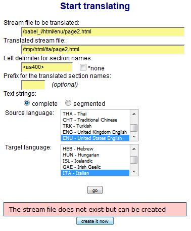 - Click the radio button of option 1. Translate a file to receive the translation frame, see Figure2: