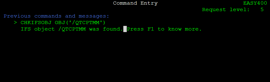 Command CHKIFSOBJ/CHKIFSOBJ checks the existence of a user-specified IFS object: