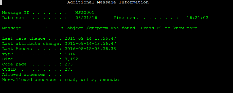 - execute indicator (set to *on if the user profile can execute or search this IFS object)