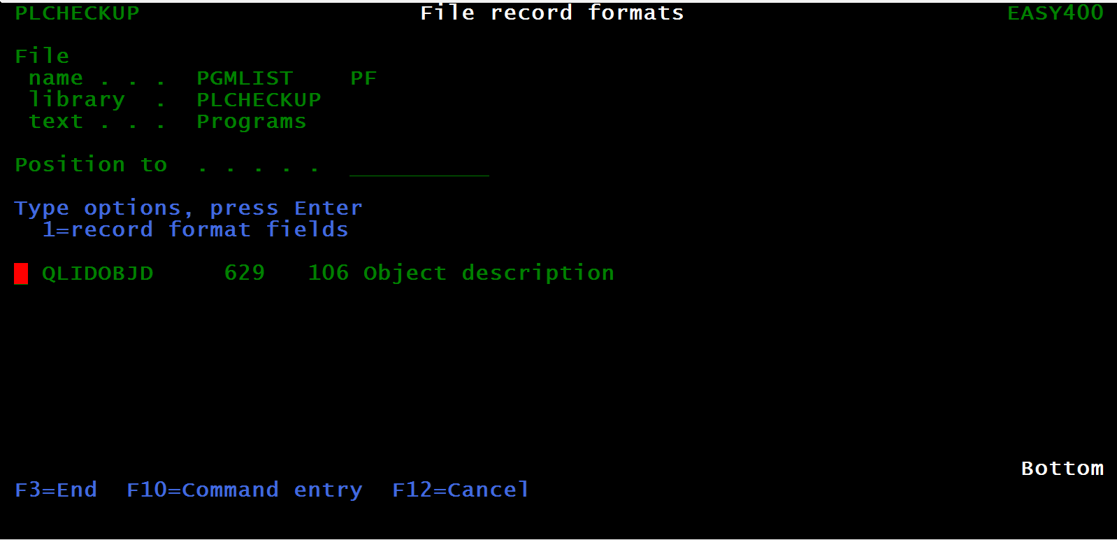 (the one you may later on recall with command PLCHECKUP/PLCHECK TOLIB(PLCREPOS)):